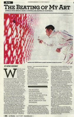 SASAKI has been drawing heartbeats for nearly 16 years now, and moved to Los Angeles last year to continue his Heartbeat drawing in new setting. "For about 10 years, I drew my own heartbeat. About four years ago, I started draw the heartbeats of other people," he tells L.A. Weekly. Talk about studying a subject.