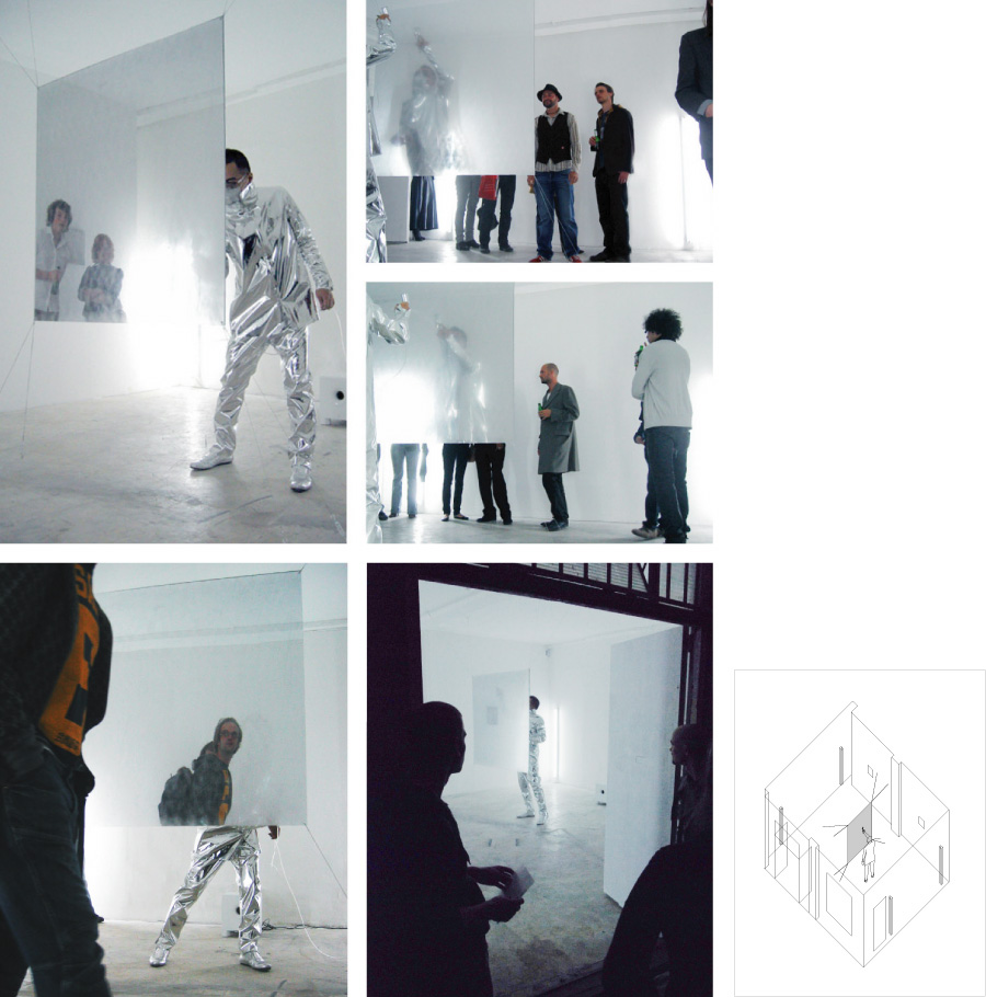 Over the course of the performance his marks became denser and the clear glass gradually started to reflect the room and the people in it.