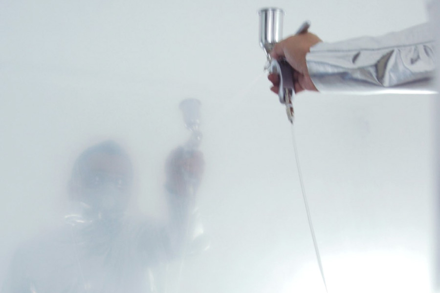 123 x 123cm, air brush - silver lacquer on the plexiglas