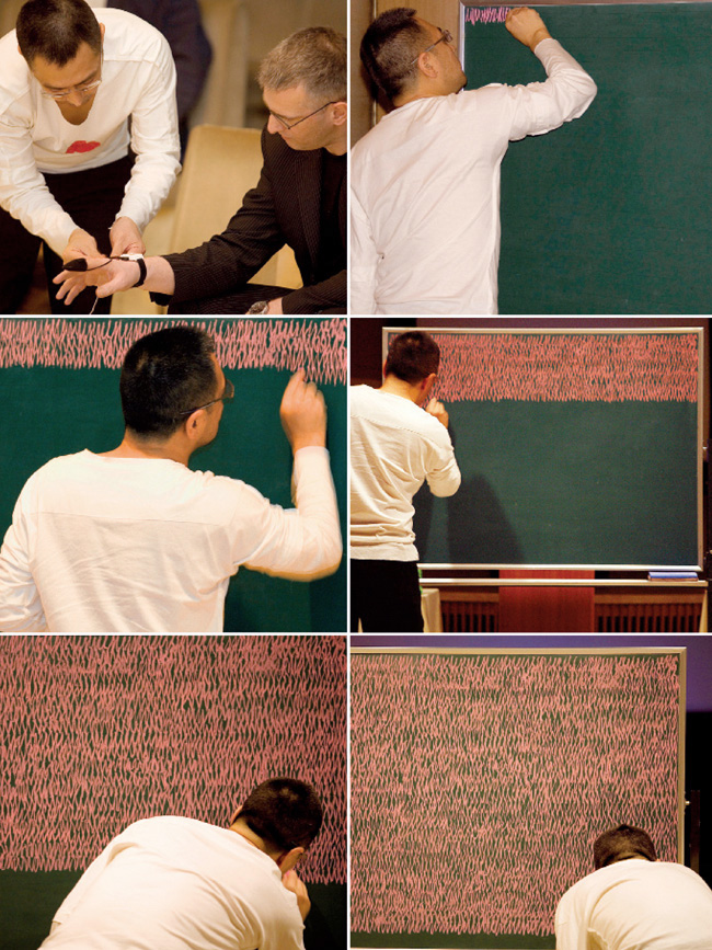 HEARTBEAT PORTRAIT, P.L., 35-MIN. 3 APR 2008, Tokyo, Japan, chalk on black-bord (W1449)