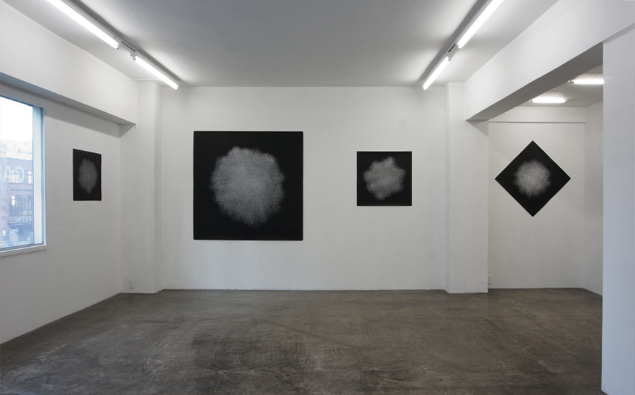 From left : UNTITLED 5000-heartbeat 58x58cm Scratched - Acrylic on paper / UNTITLED 20000-heartbeat 152x152cm Acrylic on synthetic paper (W1796) / UNTITLED 5000-heartbeat 70x70cm Acrylic on acetate film / UNTITLED 10000-heartbeat 108x108cm Scratched - Acrylic on synthetic paper