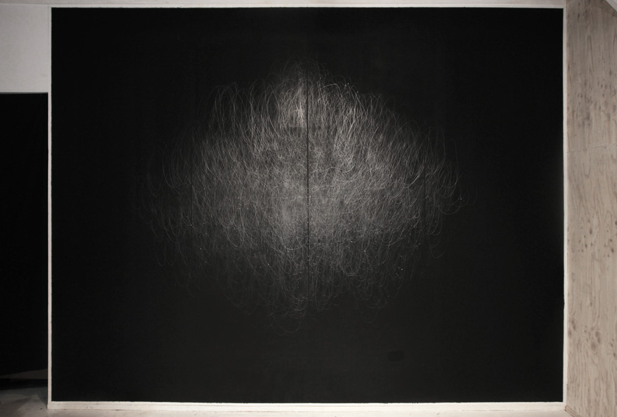ABSTARCT ONESELF : Detail of the drawing - Scratshed, Acrylic on paper and wall H260xW323cm (W2071)