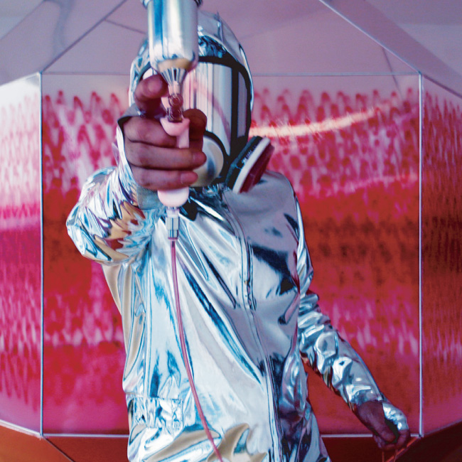 218.5 x 218.5 x 218.5 cm, air brush - lacquer on vinyl, aluminum and stenless